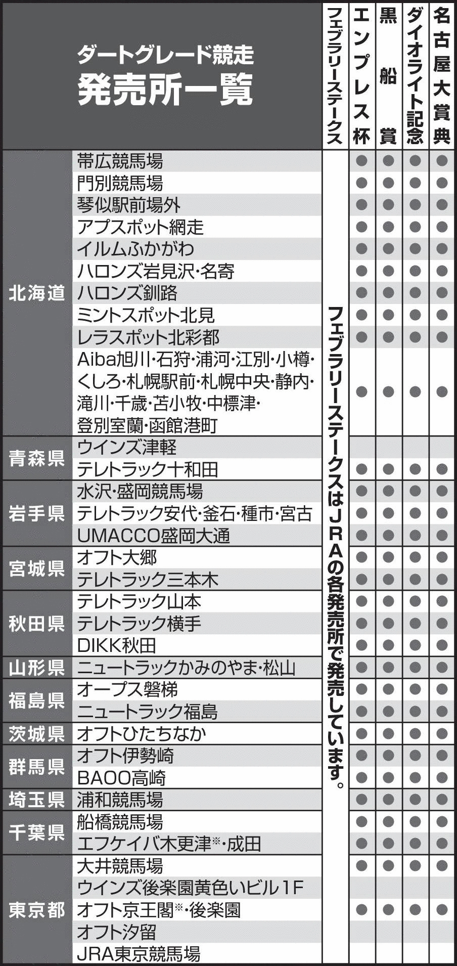 ※2021年3月開催予定の地方競馬ダートグレード競走の競馬場および場外発売施設での発売予定は、下表のとおりです。