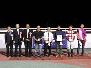 今年は初年度以来となる14頭が揃ってフルゲートでの発走となったが、一冠目の「栄冠賞」に出走していたのはオヤコダカ(3着)ただ1頭。夏の間、JRA函館、札幌へ遠征して芝レースで経験を積んだ期待馬を含め、さまざまな路線を歩んできた馬たちによる顔あわせとあって、ファンの興味を大きく惹き付ける一戦となった。