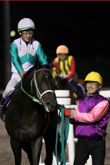 コールサインゼロにはレースで初めて乗ったのですが、先生の指示通りにレースを運ぶことができ、思い描いていた競馬ができました。4コーナーをまわっても手応えが抜群だったので、これは勝てるかもと思って必死に追いました。まだ実感が沸いてきませんが、重賞レースを初めて勝つことができて嬉しいです。