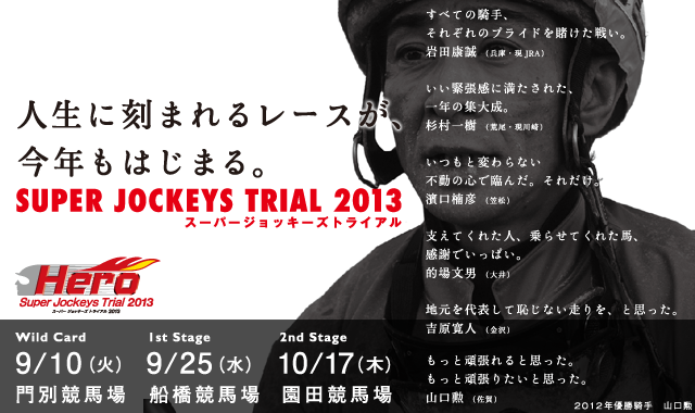 スーパージョッキーズトライアル2013 川原正一騎手(兵庫)が初優勝