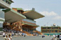 周囲の地名から、土古(どんこ)競馬場、最近では「金シャチけいばNAGOYA」の愛称で親しまれています。場内にはきしめん、どてめしほか、和洋中のおいしいお店が豊富です。04年には、あおなみ線名古屋競馬場前駅が開業し、交通アクセスが便利になりました。